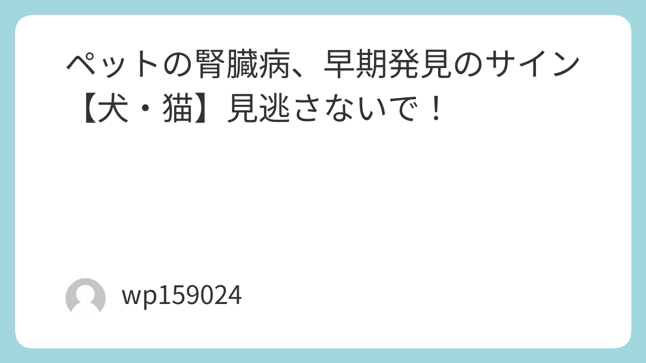 ペットの腎臓病、早期発見のサイン【犬・猫】見逃さないで!